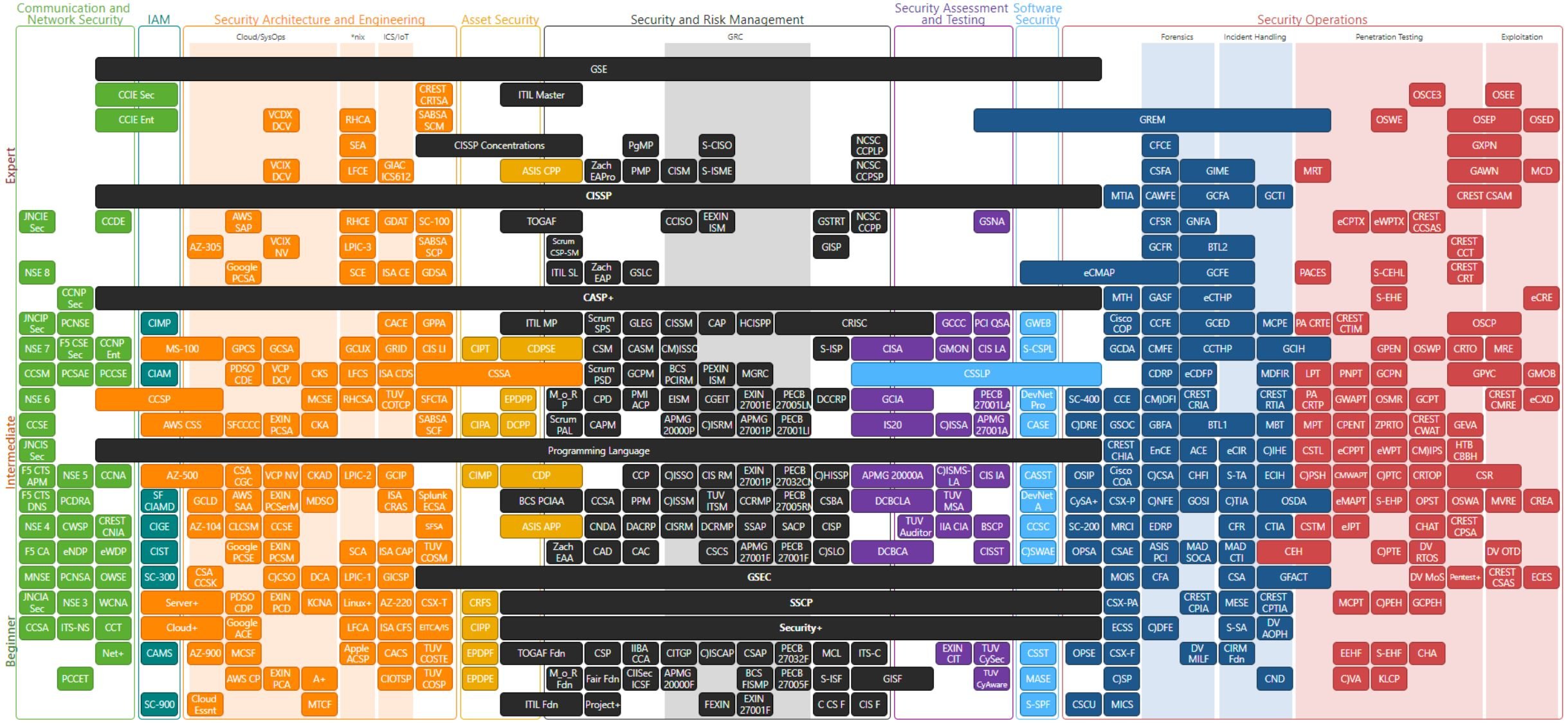 PS: Cyber Sicherheitszertifizierungen sind im Allgemeinen schwieriger als andere IT-Zertifizierungen, da sie mehrere Disziplinen abdecken.